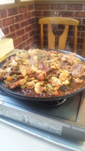 写真はここらじゃ有名なお店のホルモン焼き(\600)です。+ご飯、みそ汁、漬物の定食(\900)もあります。今日初めて行ったのですが、美味しいのです…美味しいのですがボリュームがね…30過ぎには胃薬が必要ですw