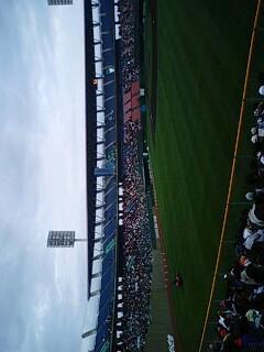 確かに一塁側、ライト側、三塁側と埋まってきてますが今の時間でも十分じゃないか。タクシー代もったいないことしたわ。(^_^;)