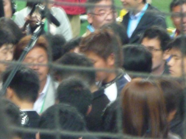 画像は汚くなっちゃいましたけど、24日の試合前報道陣に囲まれる大輔
