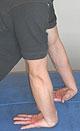 背中側に腕を伸ばして床につけます。体を腕に預け、掌側と甲側でそれぞれ30秒ずつ行います。十分ストレッチします。
