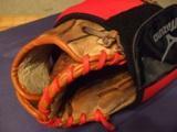 今度は、指先の紐が緩んでいるので交換しようと思います。今回は、あえて、ベージュ系ではなく赤にしました.この日に買ったグラブの整形バンドも赤にして完成です。