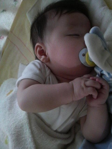 息子は寝てますよ。ウフフ