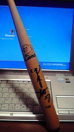 会社に置いてあったので貰った 勤のサイン入りミニバット。