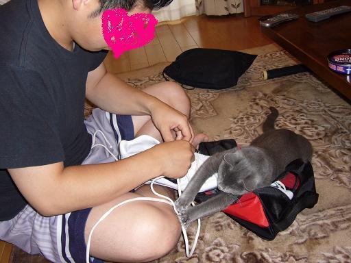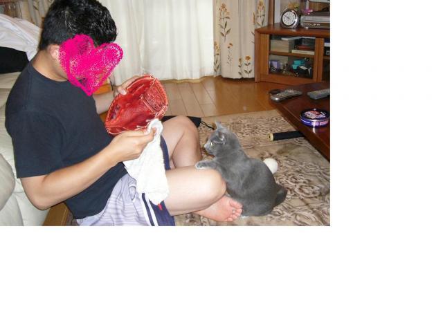 道具のお手入れをネコに手伝ってもらってる微笑ましい光景を見ながら、