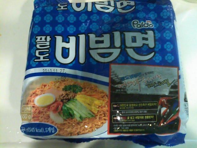 韓国で買ってきてもらいました。 ビビンミョン! 韓国のインスタントラーメンで一番好き。 夏はこれ食べないと。 私はキュウリとかハム入れて食べます。 結構辛いけどめちゃおいしい!辛ラミョン(辛ラーメン)も好きです。韓国人の友人達はインスタントラーメン食べる時、お湯を直接袋に注いで食べてました…。 ワイルドでかっこいい(笑)!