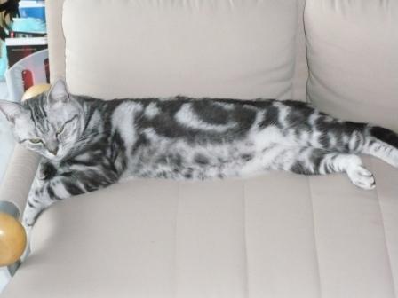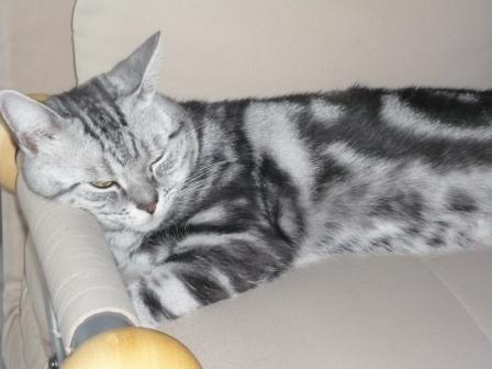 最近、ソファーベッドの肘置きを枕にして寝てたので、写真を載せてみますね。
