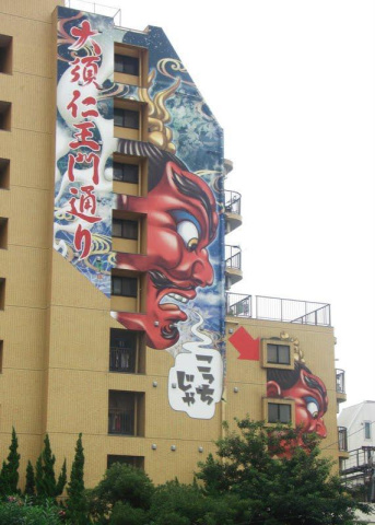 マンションの側面の壁に仁王さんの顔が・・・ 迫力あってちょっと怖い!?(笑)