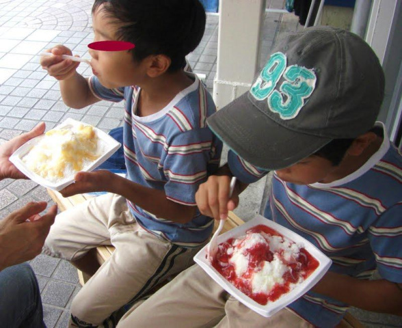 あまりの暑さにたまらず、かき氷をほおばり一息・・・・[d223]