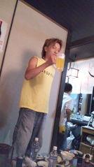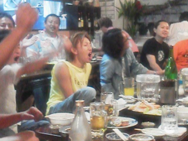 ベガサポさん御用達の居酒屋さんにて懇親会。総勢50名以上は集まったでしょうか。当然のことながら店内は貸切。ワイワイ、がやがや、ゲームの暑さのためか、ビールが気持ちよく進みます。