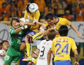 ケンペーの神ががり的な献身いや渾身の好セーブでゴールを割らせない。まさに翌日の河北新報の写真がその情景を物語っている。