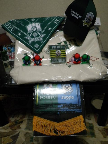 カバン・キャップ・バンダナ・リストバンド・記念ペナント、そしてまたアウェイに、各地に行った時の出会いの記念に渡す、勝ちぼぼ君達。