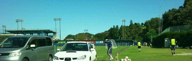 まだ一試合目の藤枝MYFC vs マルヤスやってますが、車中から見える藤枝MYFC ゴールにはあまりボールがきませんキーパーもあまりゴール前にいないしと、思ってたら、セカンドの選手が車の前にきて練習始めましたさ、そろそろスタンドに行くかな