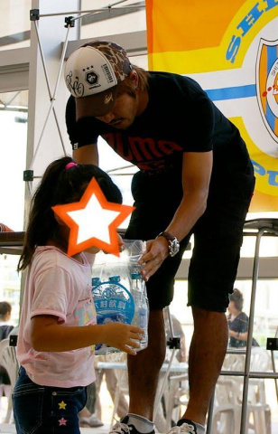 勝ち抜いたちびっ子に、プレゼントをそっと渡す枝くん[d150][d150][d150]