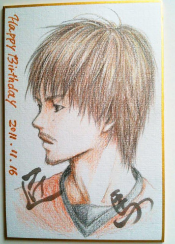 ハガキ大の色紙に、似顔絵を描いてみました〜っっっ!