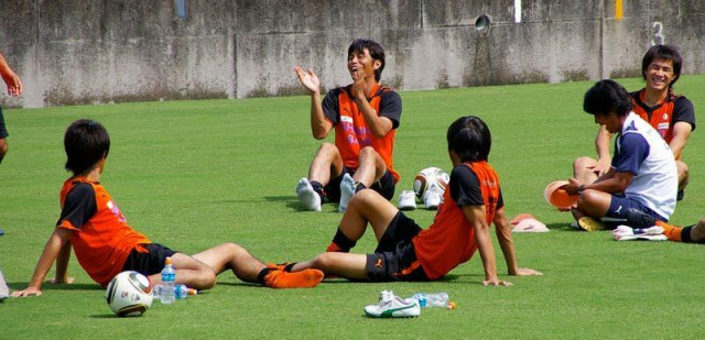 ピッチ脇で談笑していたメンバー。