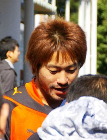スタンド横の階段で待ち構えていると、隣の方がサインをもらった後に腰の具合を聞いていて、それに