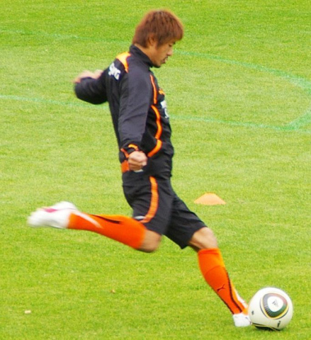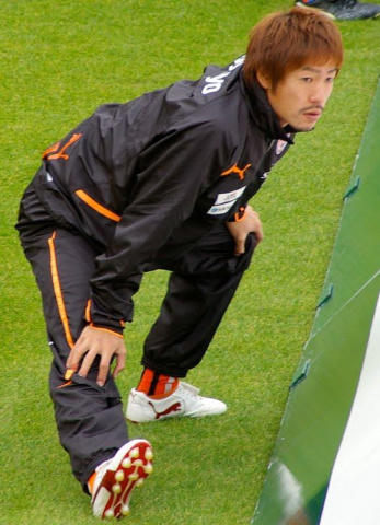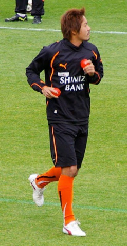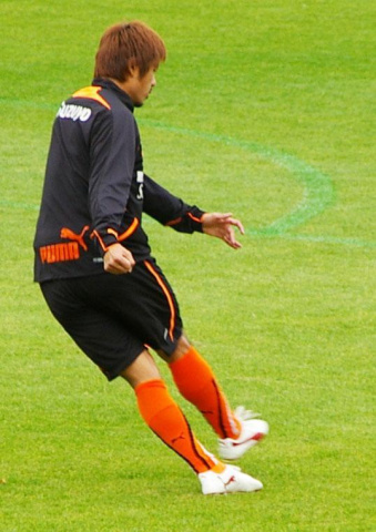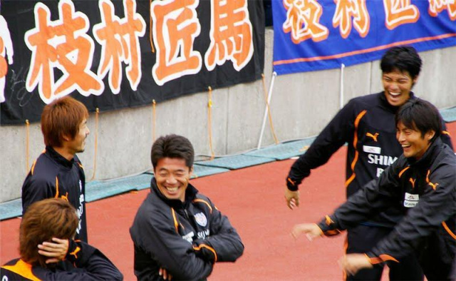 今度は淳吾くんのPKゴールが決まったとたん、スポンサー看板の所へ走っていって手をついて乗り出す枝くん!