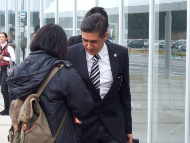 そちらのバスから先に、監督&スタッフが登場〜〜〜!