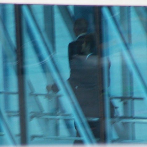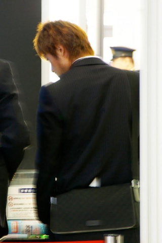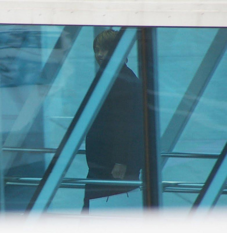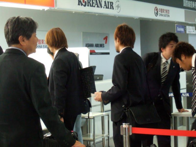搭乗手続きして2階へ上がっていく所も…