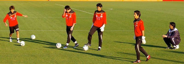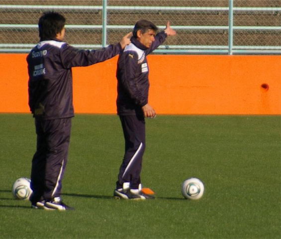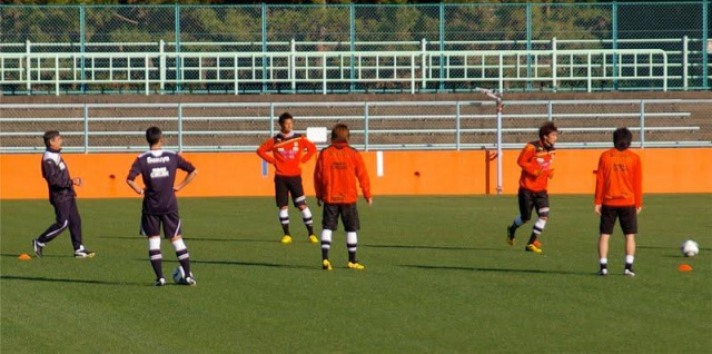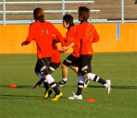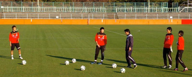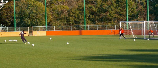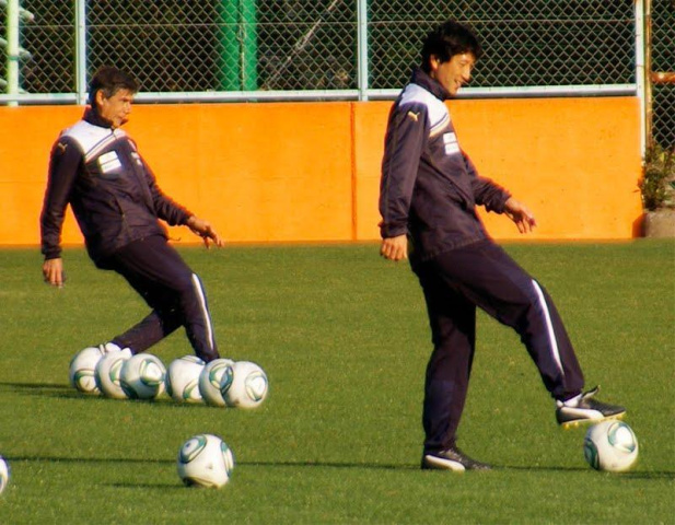 少ない人数ながらも、きっちり監督が指導してまして、パスを回してシュートって練習の始めのパス出しを監督自ら蹴ってました★