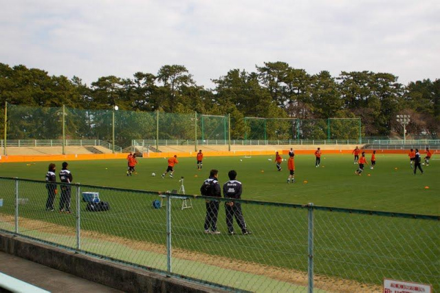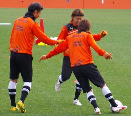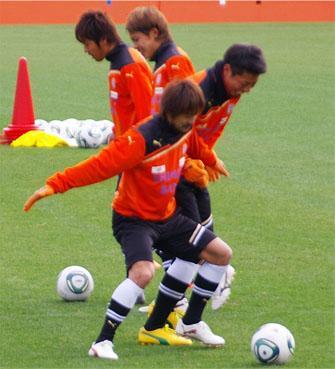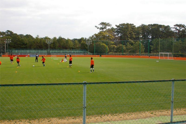 今度は、奥の方でゴール前のセットプレイ練習。