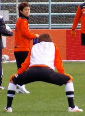 また、近い場所でボールを使いながらウォームアップしていて、パス練の後はボール取りっこゲーム開始!