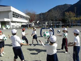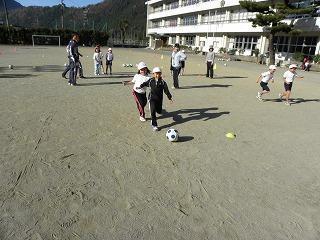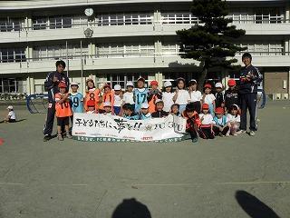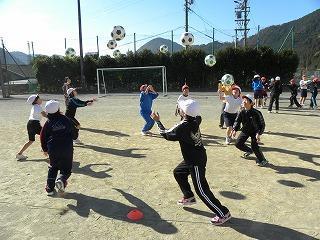 今回は、1年生から6年生の全校生徒(約100名)に校庭でスポーツ教室を実施しました。