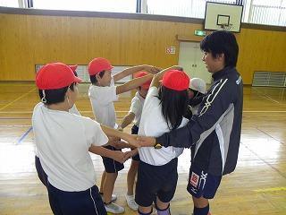 5年生、6年生は人間の知恵の輪を実施。短い時間の中で複雑に絡み合った輪を