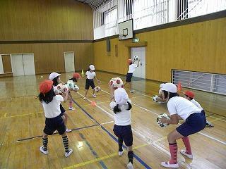 3、4年生はボール投げやボール取りなどのチームでのゲームを中心に実施。