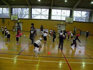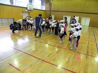 1、2年生はまだ早い時間の体育館ということもあり寒い中でのスポーツ教室。