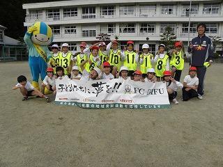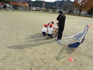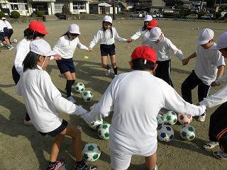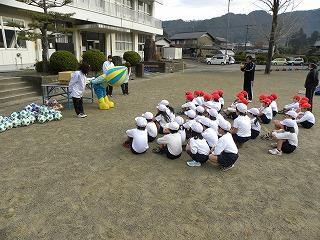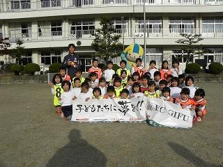 今回は、1年生から6年生の全校生徒(約122名)に校庭でスポーツ教室を実施しました。
