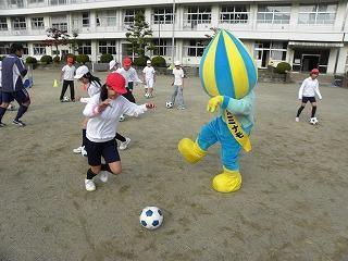 校庭でボールを蹴っていると教室からのぞいていた子どもたちが「ミナモ!」と歓声をあげていました。