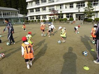 3、4年生はサッカーのミニゲームからチームでのボール取り合戦など、