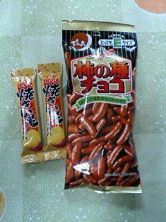 おやつには『柿の種チョコ』と『ひとくち焼き芋羊羹』をチョイス☆