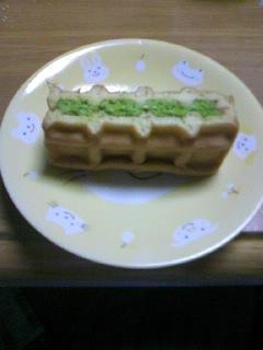 ワッフル抹茶味、さほど甘くなく美味でした。