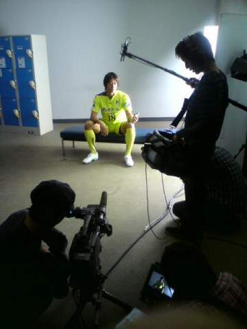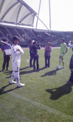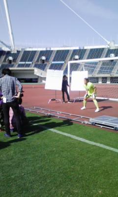 まずはユニフォームを着てスタジアムのピッチで撮影☆