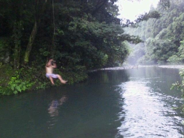 この人は雨にも夏とは思えない涼しさにも打ち勝ち、見事にターザンのごとく川にむかって何度もダイブをかましていましたよ・・・・・・・・・・・・・・・・(汗)