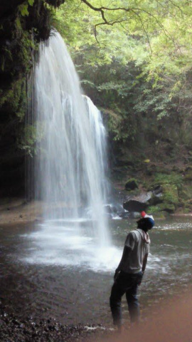 圧巻の滝を見て思わず真下から滝を眺めてみるわたし↓↓↓