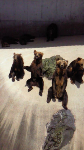 その後くまに餌をあげにいったら、暑さのせいかちょっと機嫌の悪い彼らから「はやく、よこせよっ!」とばかりに手で挑発されてしまいました↓↓↓