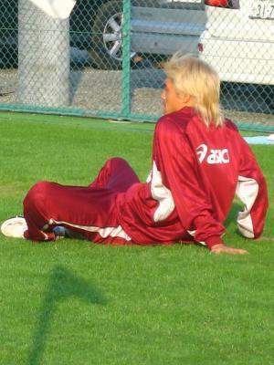 グランドの出入口ら辺で見学してたら、遅れて到着した選手たち?が目の前を通過していく姿に
