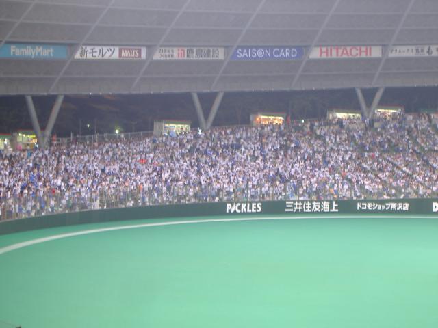 って思っていたら、周囲の警備員やスタッフに向かって「他球場の途中経過を(オーロラビジョンで)写せ!!」って食って掛かっているマリーンズのユニ着ている人たちが何人もいたけど・・・何だかイヤになって、内野に移りましたです。はい。