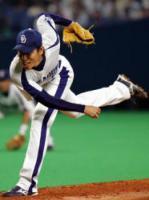 その隣のピッチングマシーンには、あまり見たことがない中日のピッチャーの姿が投影されていました。「佐藤允」っていうピッチャーでした(写真参照)。こっそりそこにいたロッテの選手が試しに打ってみようとしましたが、なかなか的を絞れずに凡打ばかりでした。