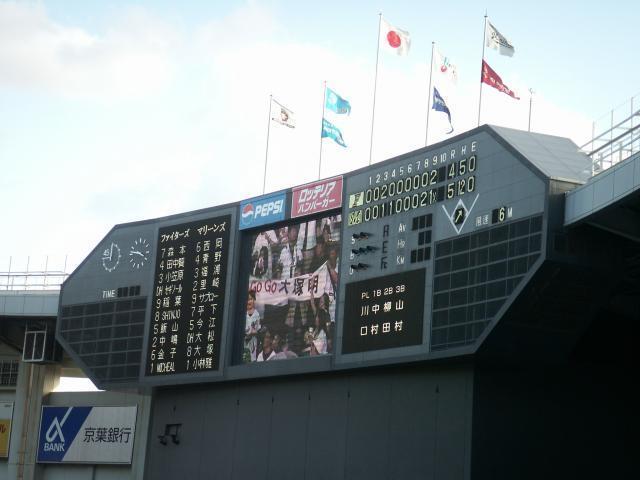 里崎のソロホームランで追いついて、青野、福浦のヒットで2点差の4−2へ。