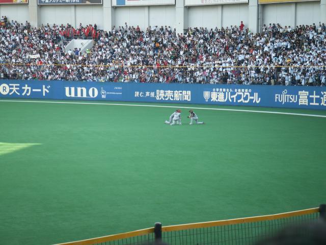 南(入場曲はタッチ、ちょっとちょっとちょっと・・・・・それはたっち・・・・・)の犠飛!「みなみちゃーん」の野太いコールもありましたけど、とられた後に1点取れたのは大きかった。