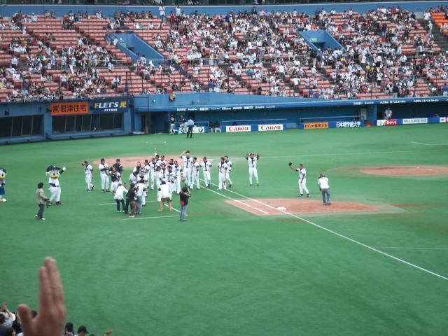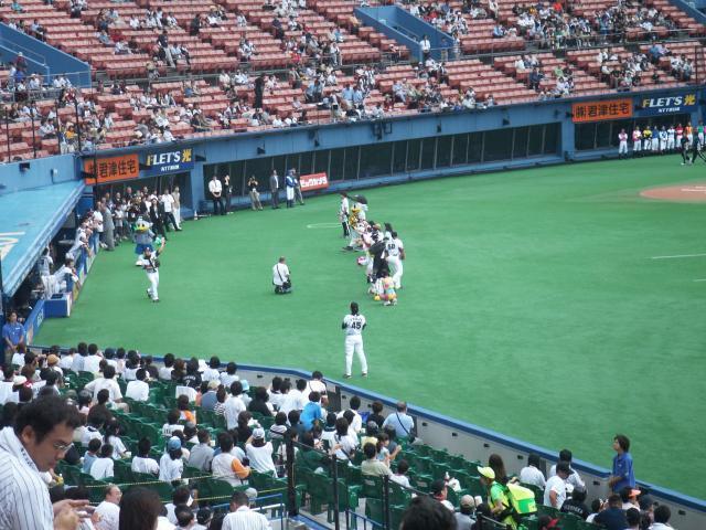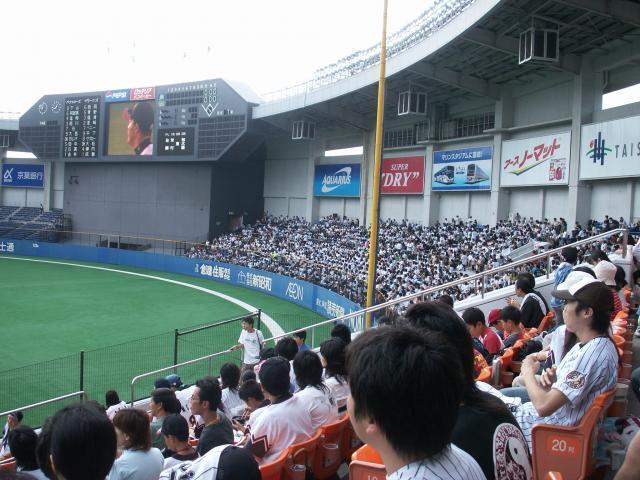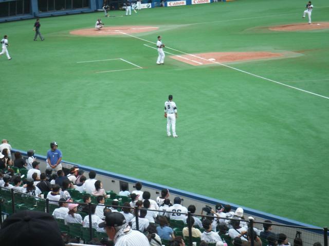 大西は、3塁まで到達!危なくランニングホームラン・・・・・。スタンドがどよめきます、また、嫌なながれか???しかし、この後を成瀬が三振にきってとり、チェンジ。