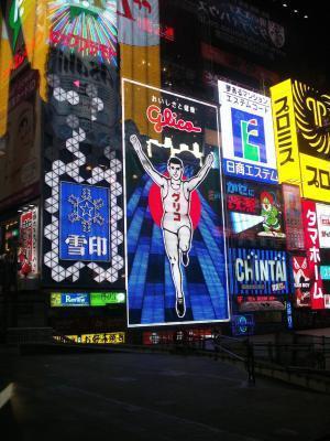 で、あのネオンと本物のくいだおれ人形?でかいふぐにかにと、堪能してから、次は