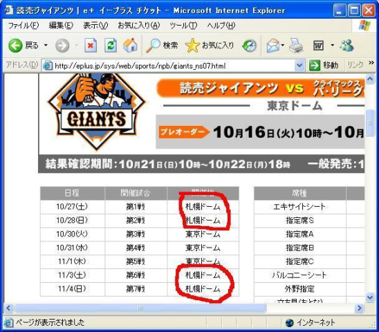 東京ドームでの日本シリーズチケットを確認しようとしてみたら本日時点で、日本シリーズは、札幌ドームと東京ドームでやることが決まっているようです。ふざけんな!!!と・・・・・なにしてんだろ俺。