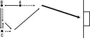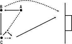 AからBへパス。BはCへパス。