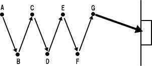 AはBへ、B→C→D→E→F→Gと矢印の方向へパスをつなぐ。