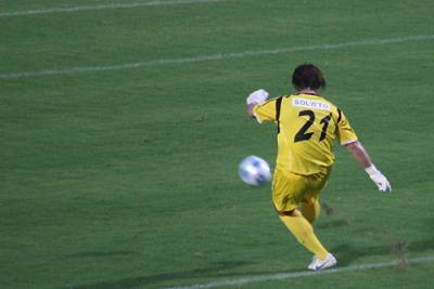 永井がゲームに馴染む間もなく、愛媛にアクシデント。金守が2枚目のイエローで退場。相手のスローインを邪魔したことによるものだが、愛媛はこれで10人で戦うことに。